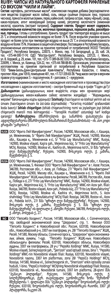 Чипсы Лэйс рифлёные чили и лайм 125 г