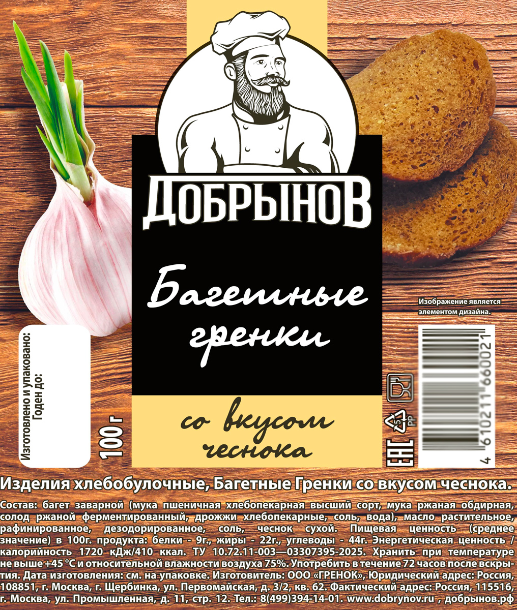 Гренки багетные с чесноком 100 г