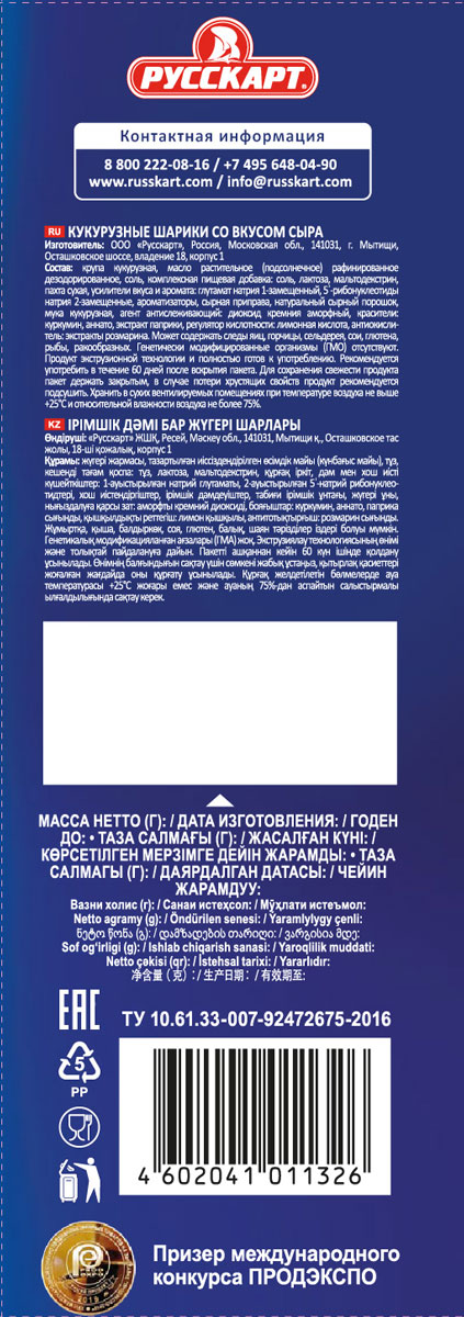 Кукурузные шарики «СырBall»: никогда ещё сыр не был таким воздушным, лёгким и хрустящим. Мягкий и насыщенный вкус натурального сливочного сыра подчёркивает нежную и хрустящую текстуру шариков. Вкусный перекус для прогулки с друзьями или просмотра любимого сериала!