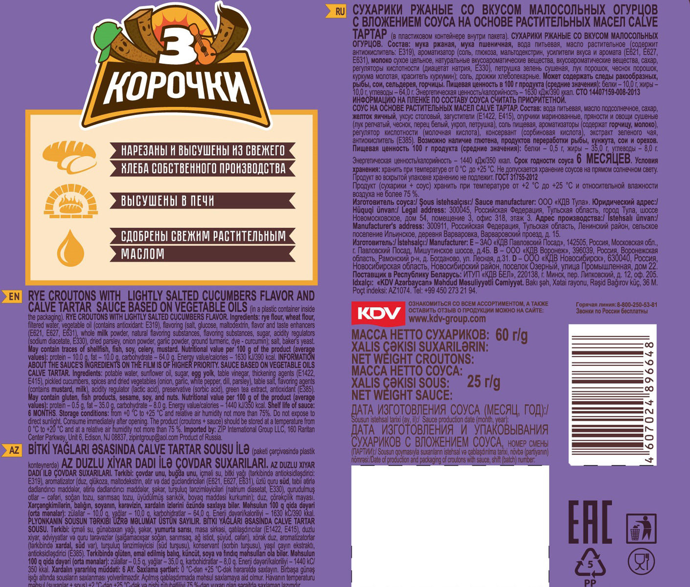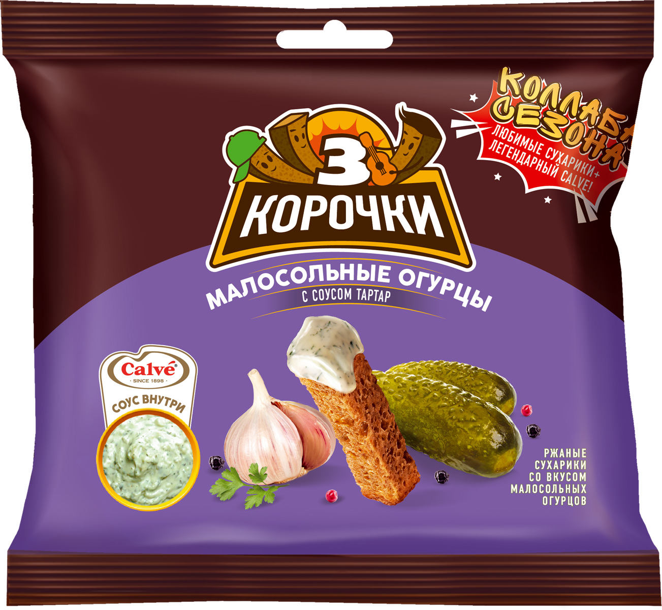 Сухарики Три Корочки Малосольные огурцы + соус