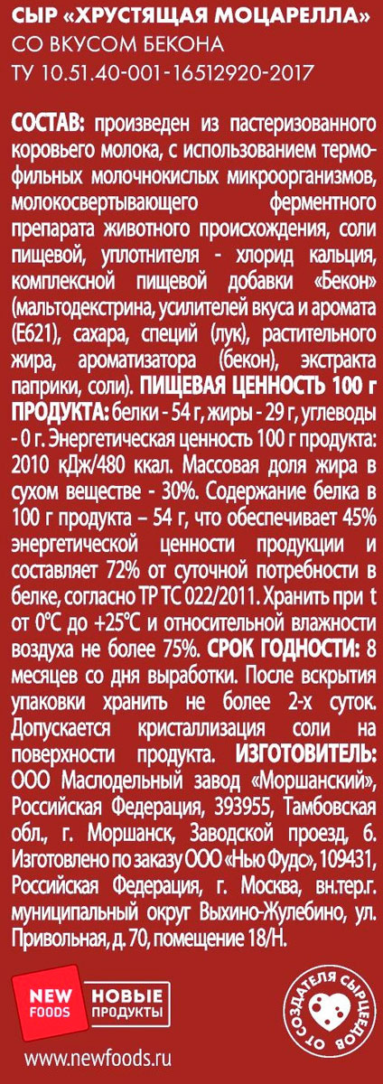 Сыр Чизки хрустящая моцарелла бекон