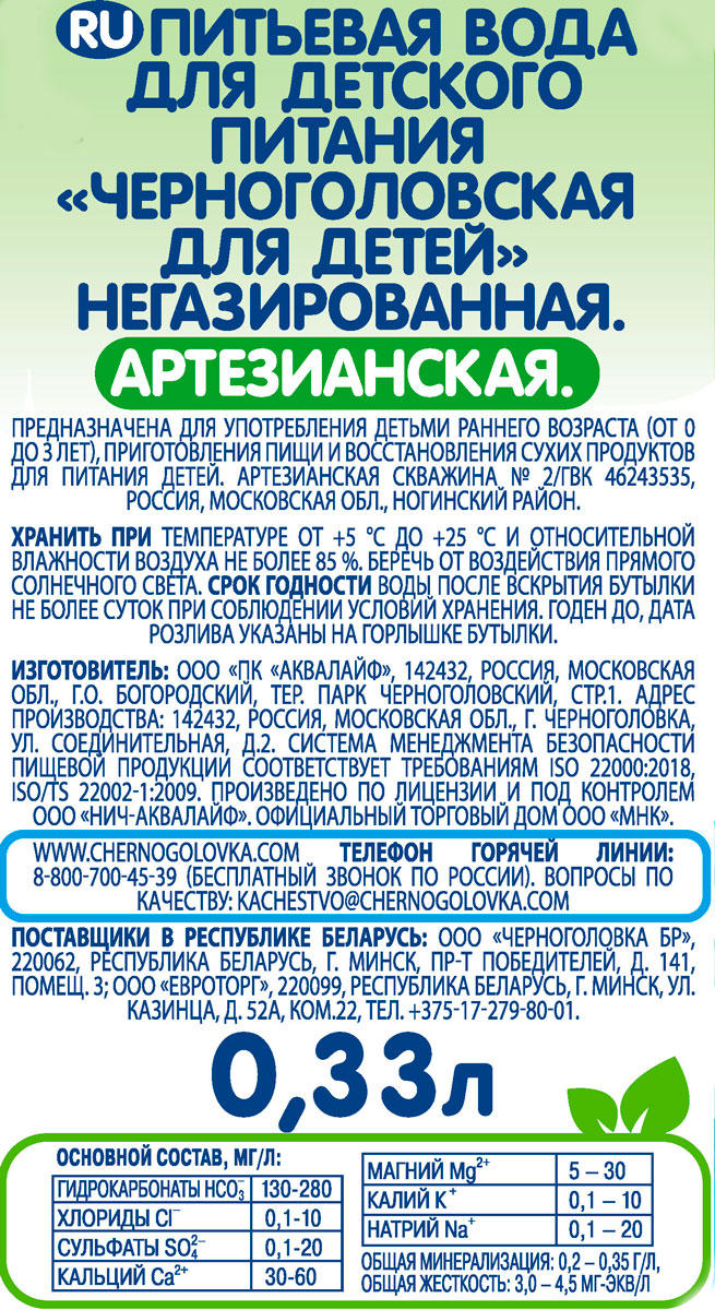 Артезианская негазированная вода для детей Черноголовская