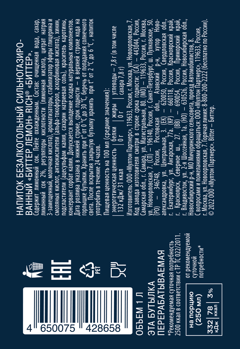 Напиток газированный Рич Биттер Лемон 1 л
