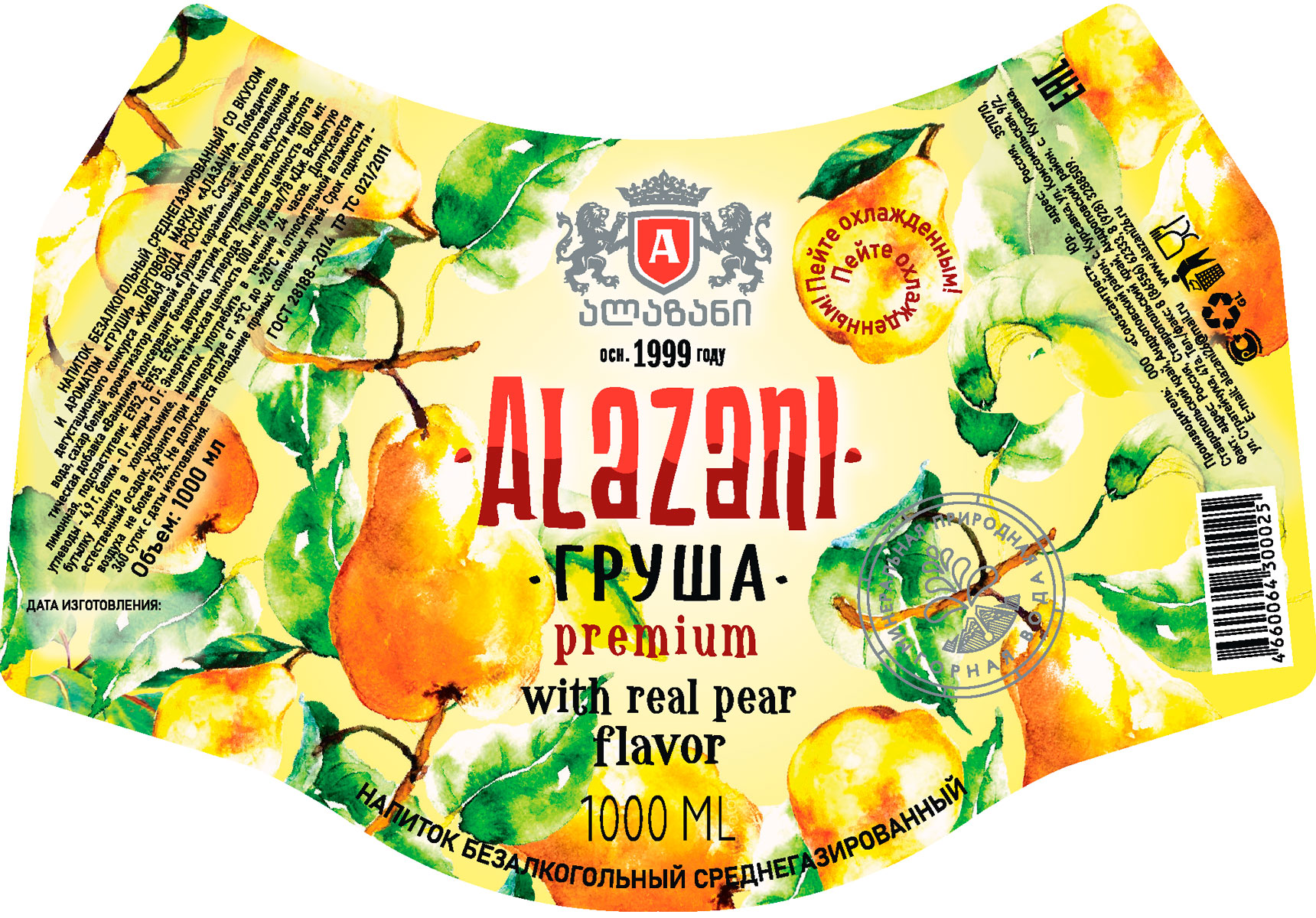 Достаточно традиционный по вкусу, но неординарный по содержанию грушевый лимонад «Алазани» отличается, в первую очередь, тем, что в его состав входит натуральный настой груши. Он и определяет богатство фруктового вкуса. Лимонад обладает сладким, естественным, мягким вкусом. Он отлично освежает, тонизирует и бодрит.
