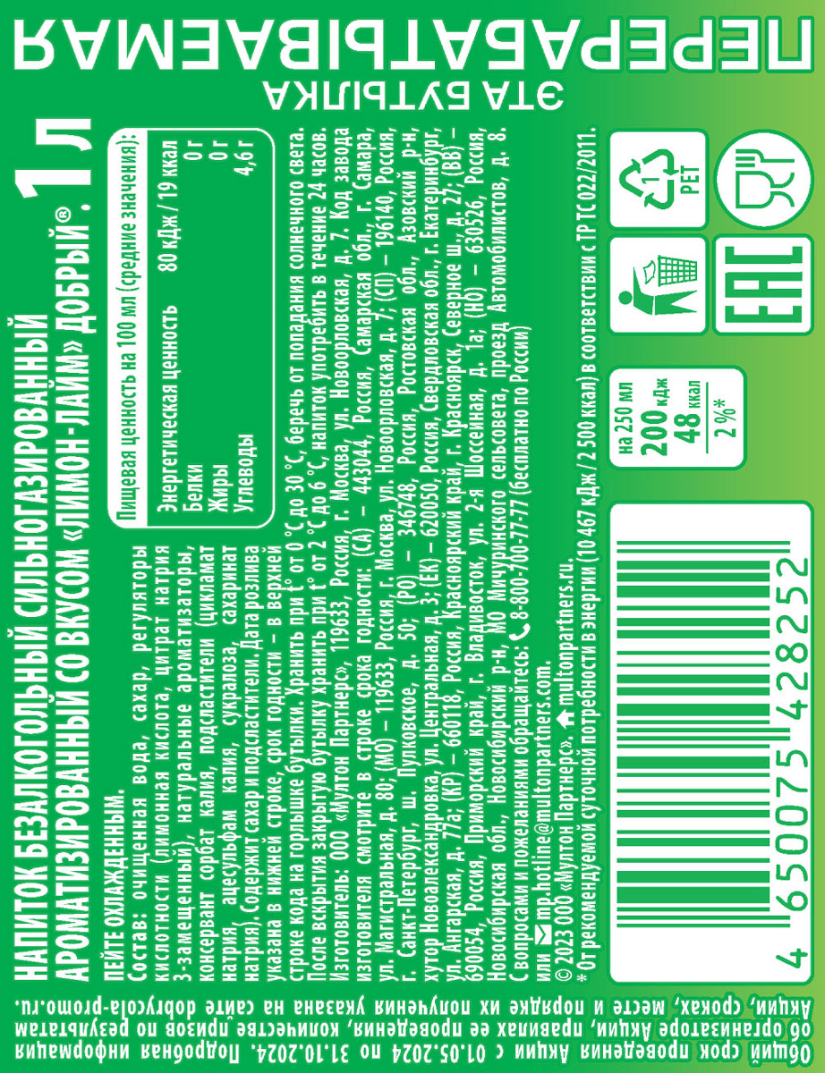 Эта газированная вода производится на высококачественном вкусо-ароматическом сырье и обладает ярко выраженными освежающими и прохладительными свойствами. Зарядись лаймово-лимонным настроением!