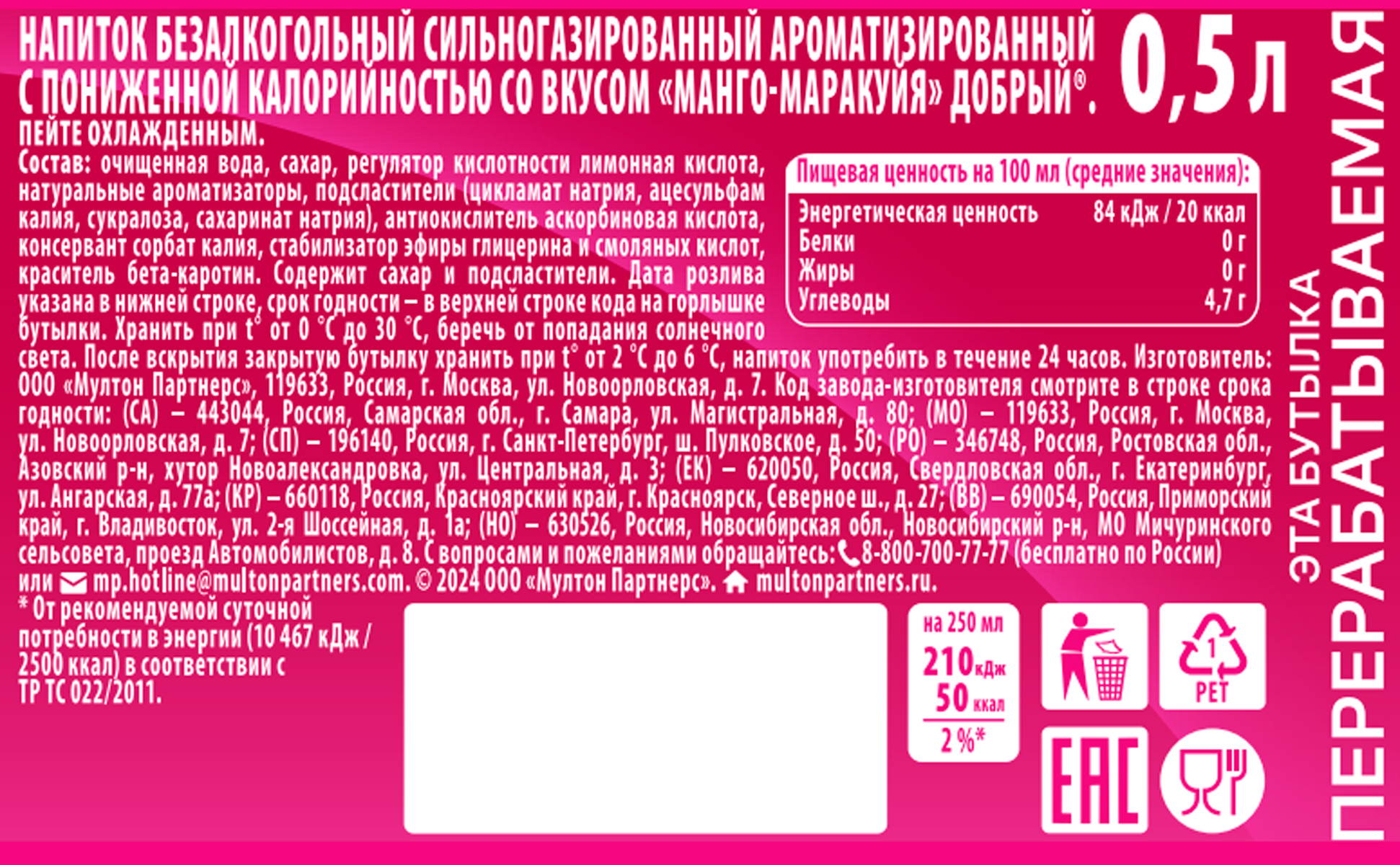 Добрый со вкусом Манго маракуйя