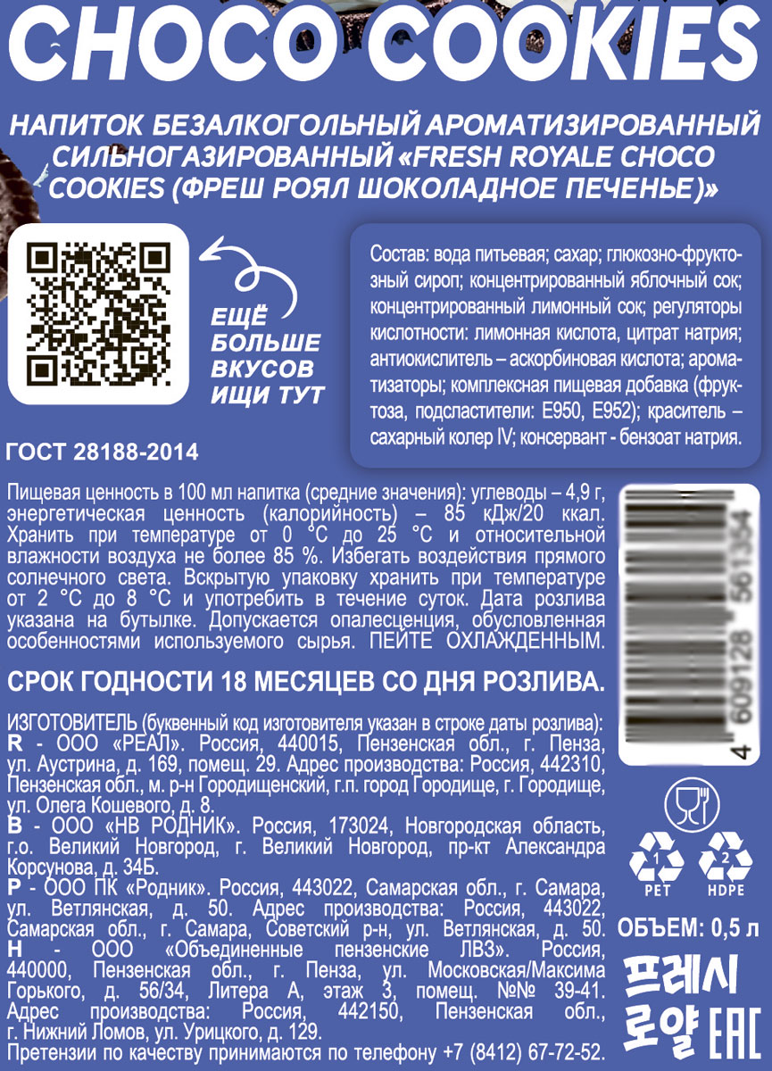 Напиток газированный Фреш Роял Шоколадное печенье 0,5 л