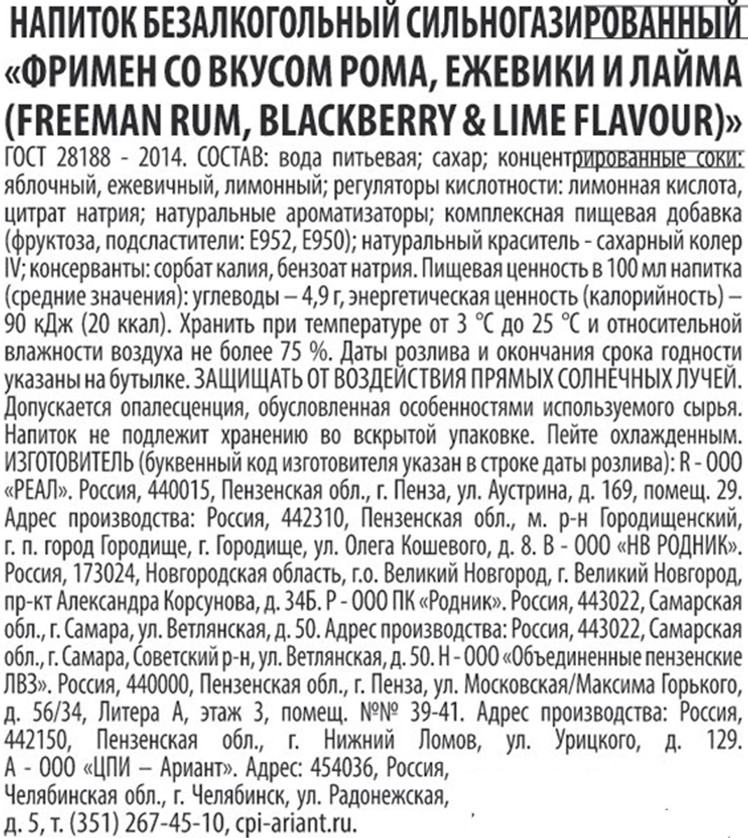 Напиток газированный Фримен Ром Ежевика Лайм ст