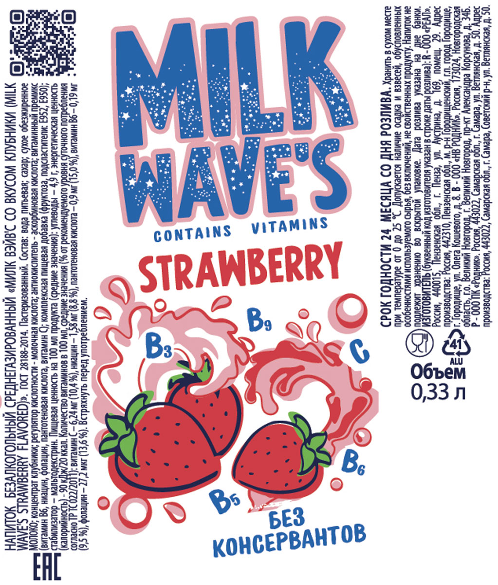 Напиток Милк Вэйв'с клубника безалкогольный ж/б 0,33 л