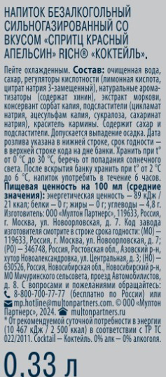 Напиток Рич Коктейль Спритц красный апельсин ж/б 0,33 л