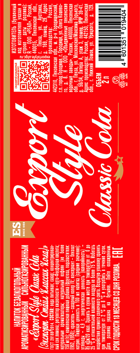 Известный и любимый всеми напиток с бодрящим и узнаваемым вкусом дарит ощущение праздника одним своим видом. Напиток Export Style Cola производятся на основе артезианской воды из высококачественных вкусо-ароматических компонентов. Он прекрасно освежает и утоляет жажду, также на его основе можно готовить знаменитые коктейли.