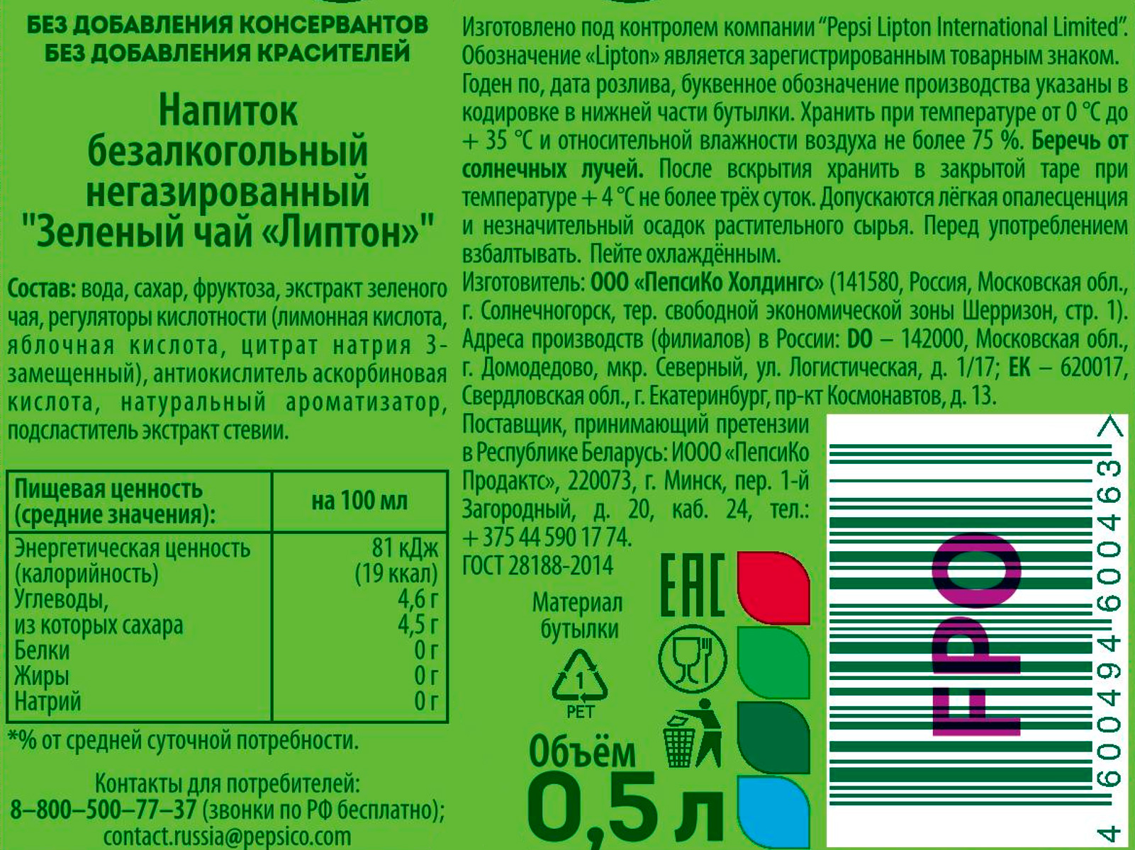 Холодный зеленый чай Lipton – это то, что нужно для утоления жажды и ощущения свежести в жару или после тяжелого дня. В напитке соединяются польза зеленого чая и бодрящий, освежающий вкус. Без консервантов. Без подсластителей. Без красителей. На растительном сырье. Пастеризованный. Пейте охлажденным.