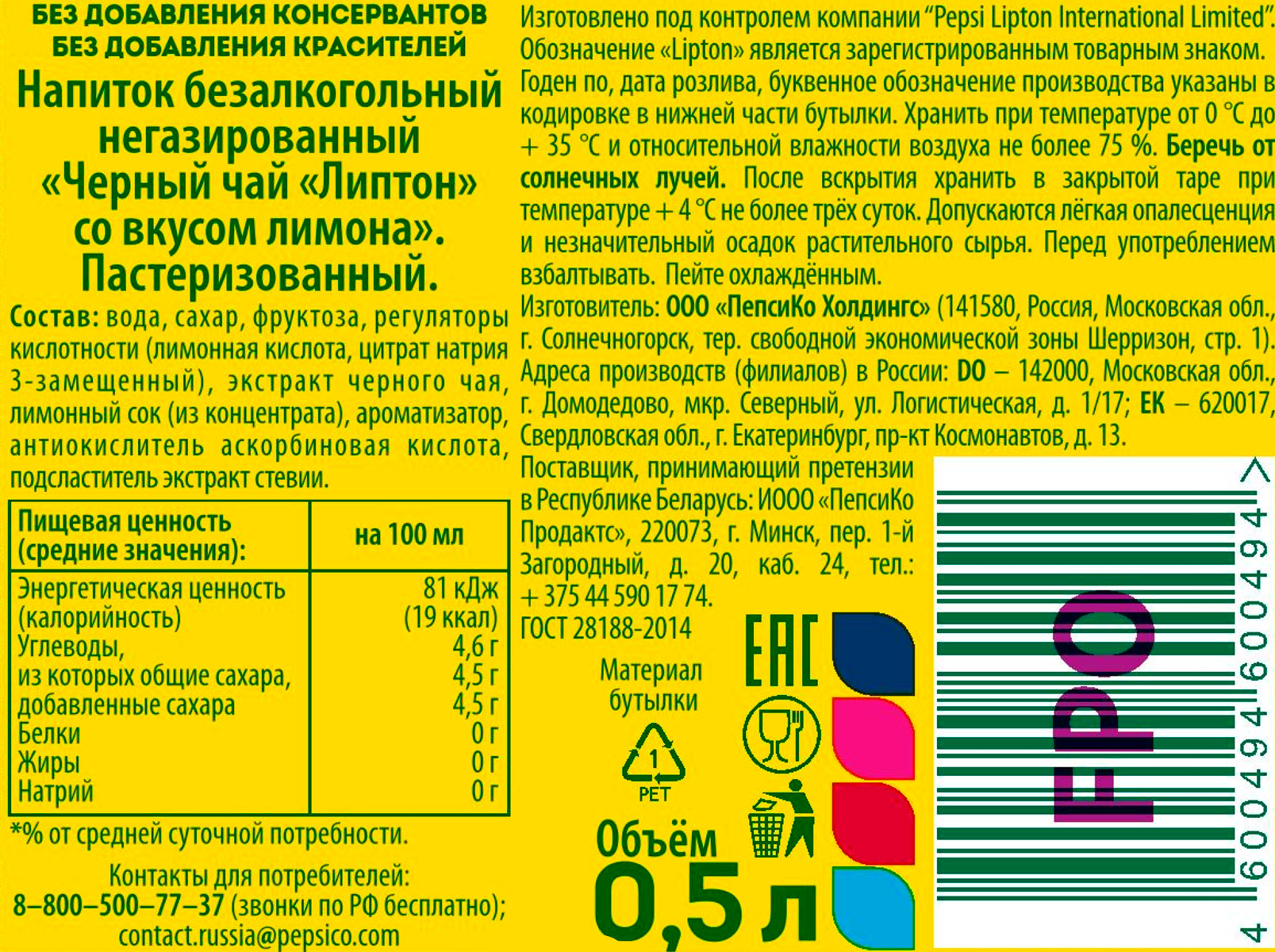 Чай Липтон черный Лимон 0,5 л