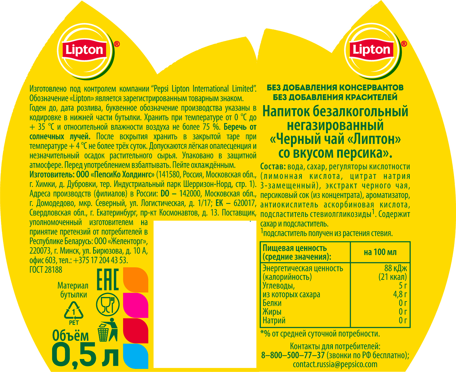 Чай Липтон черный Персик 0,5 л