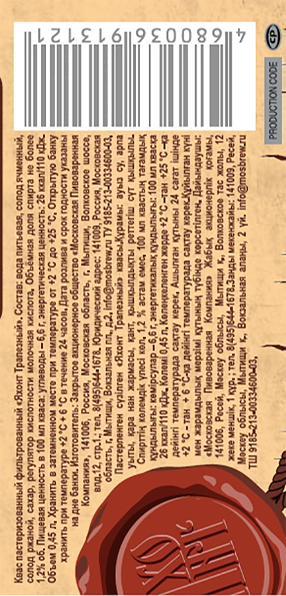 Квас Яхонт трапезный