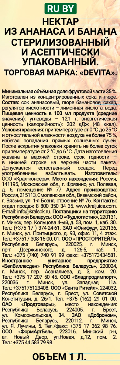 Нектар ДеВита со вкусом ананаса и банана