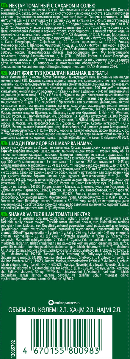 Добрый Томат — нектар без консервантов и красителей в удобной упаковке для большой семьи или компании.