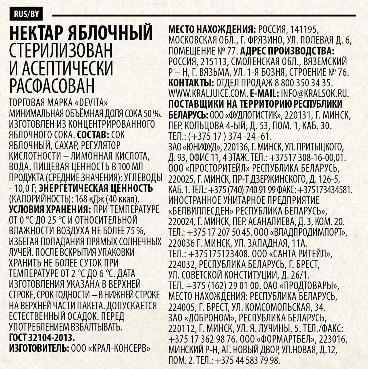 Яблочный нектар DeVita богат витаминами и антиоксидантами. Он идеален для любого случая: насладитесь нектаром на завтрак, обед или ужин! Побалуйте себя и своих близких истинным удовольствием природы с яблочным нектаром DeVita. Каждый глоток – это заряд положительных эмоций и энергии на весь день!