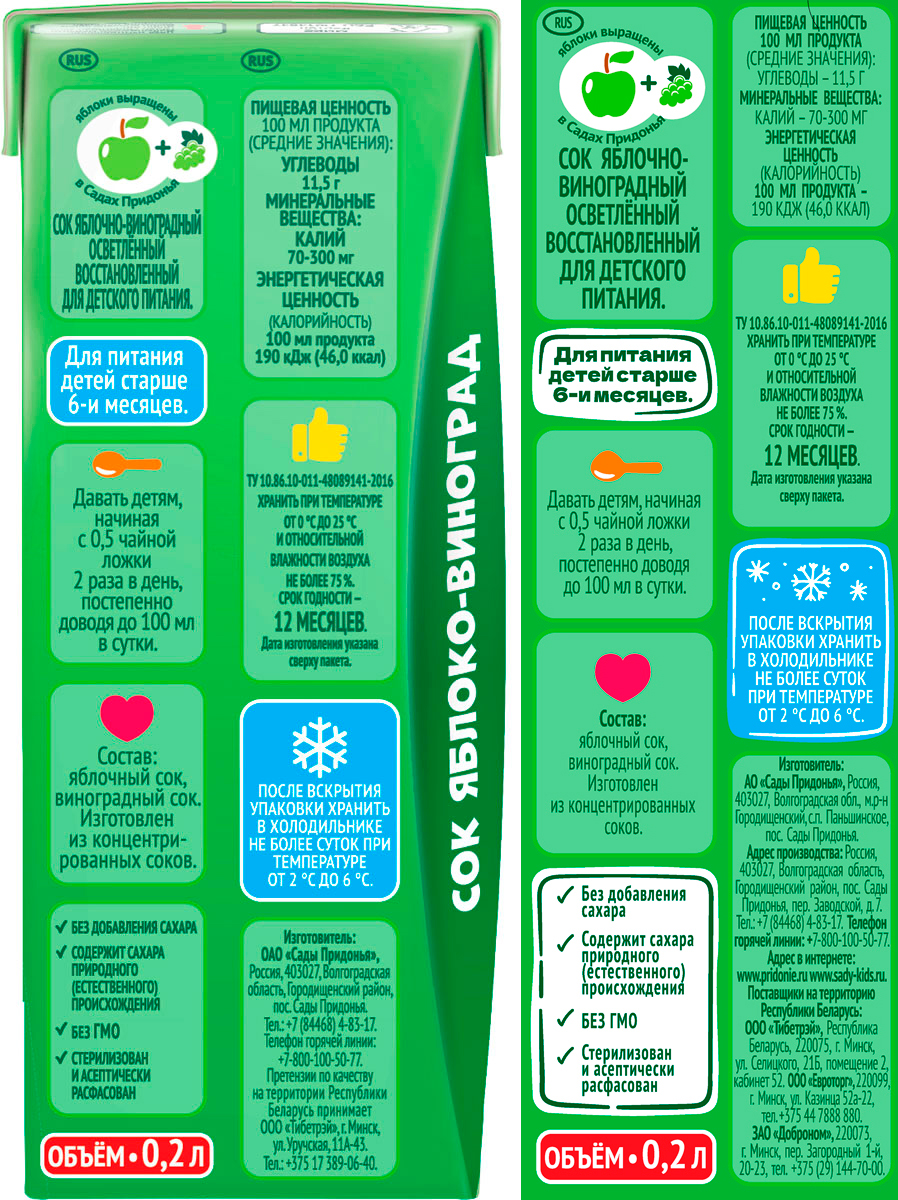Сок Сады Придонья яблоко виноград