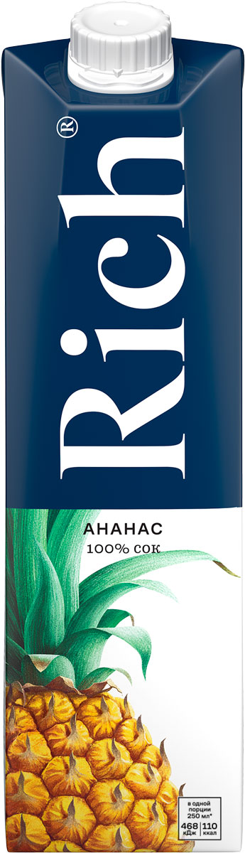 Оцените экзотическую сладость ананасового сока: неповторимый тропический вкус и тонкий аромат спелых фруктов открываются с каждым глотком Rich.