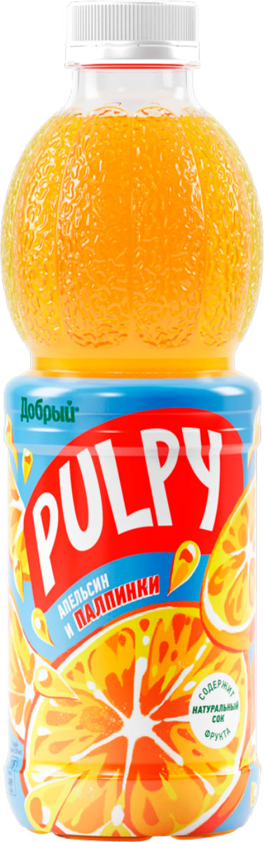Pulpy «Апельсин» – это микс апельсинового сока, артезианской воды и натуральной мякоти цитрусовых, «палпинок», которые делают напиток таким невероятно свежим! Яркий вкус напитка дает тебе возможность оторваться от дел в течение дня. Встряхни Pulpy, и он встряхнет тебя!
