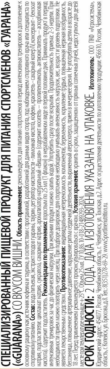 Специализированный продукт для спортсменов Гуарана со вкусом вишни