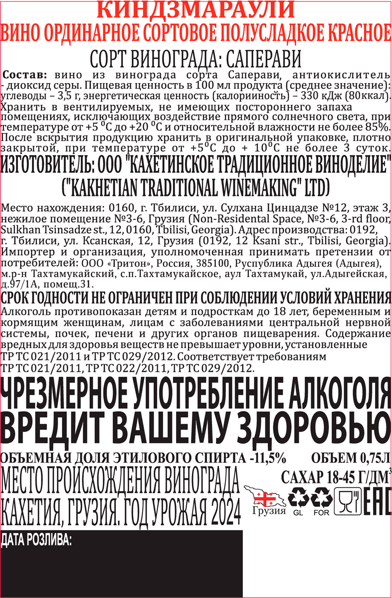 Вино Chateau Manavi Киндзмараули красное полусладкое 0,75 л