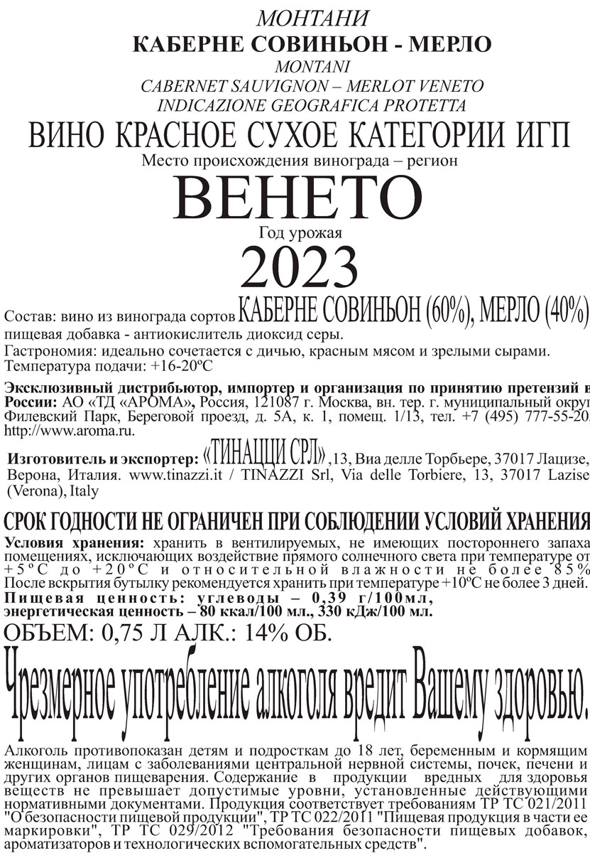 Вино Монтани Каберне Совиньон Мерло красное сухое 0,75 л