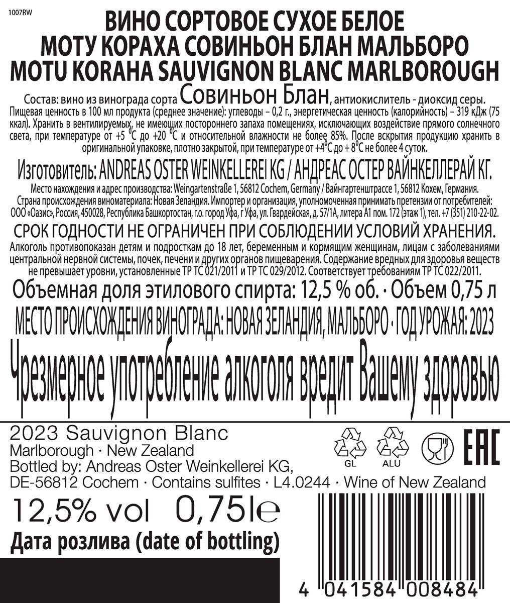 Вино Мальборо Моту Кораха белое сухое 0,75 л