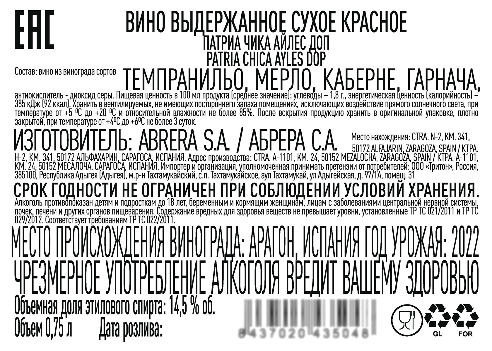 Вино Патриа Чика красное сухое 0,75 л