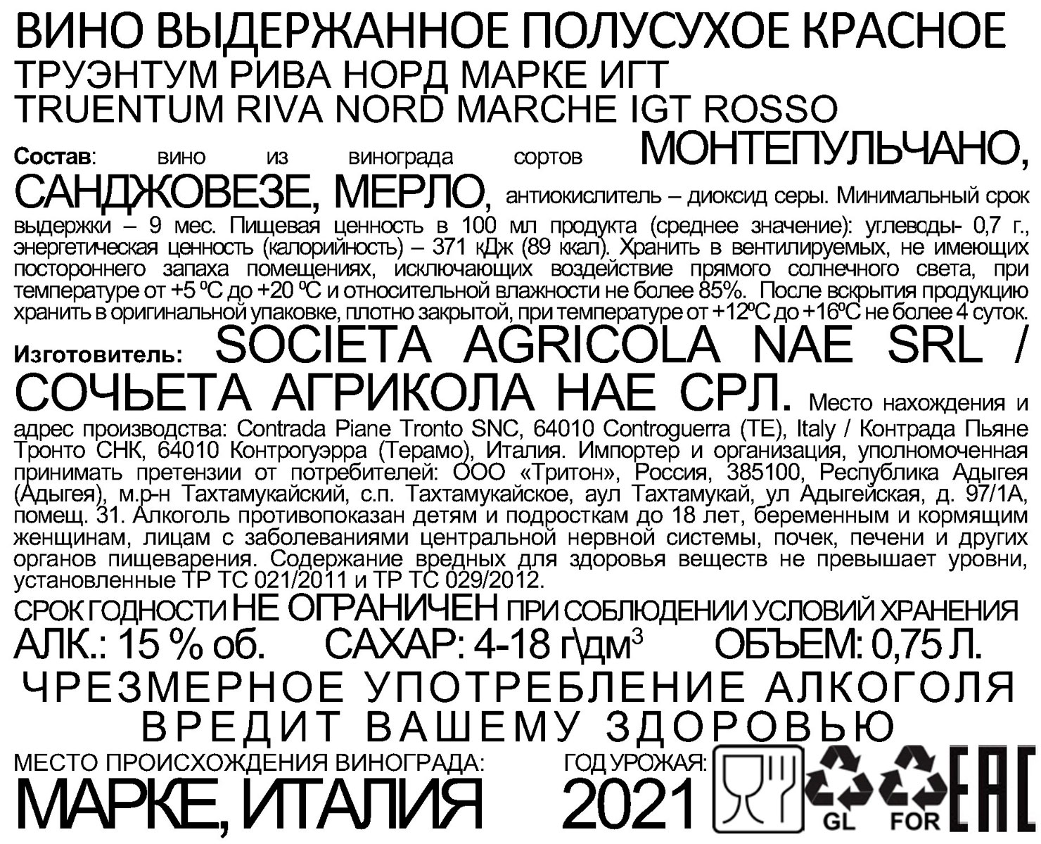 Вино Труэнтум Рива Норд Марке красное полусухое 0,75 л