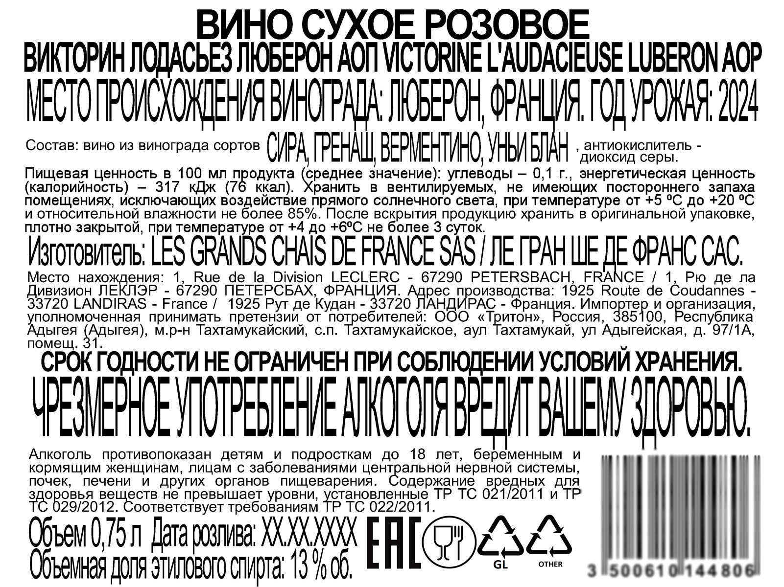 Вино Викторин Люберон розовое сухое 0,75 л