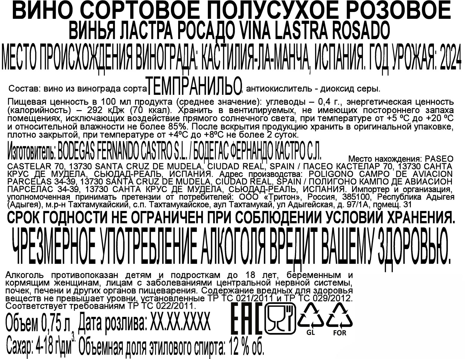 Вино Винья Ластра Росадо розовое полусухое 0,75 л