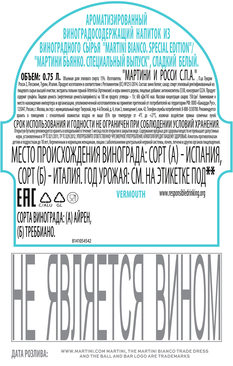Martini Bianco — это яркий сбалансированный аперитив с нежными нотками ванили и едва уловимой сладостью, приготовленный на основе белых хрустящих вин и аутентичных натуральных компонентов. Отлично сочетается с пикантными закусками, сырами и морепродуктами. Подавайте охлажденным или с большим количеством льда в бокале «рокс» с соком дольки лайма.