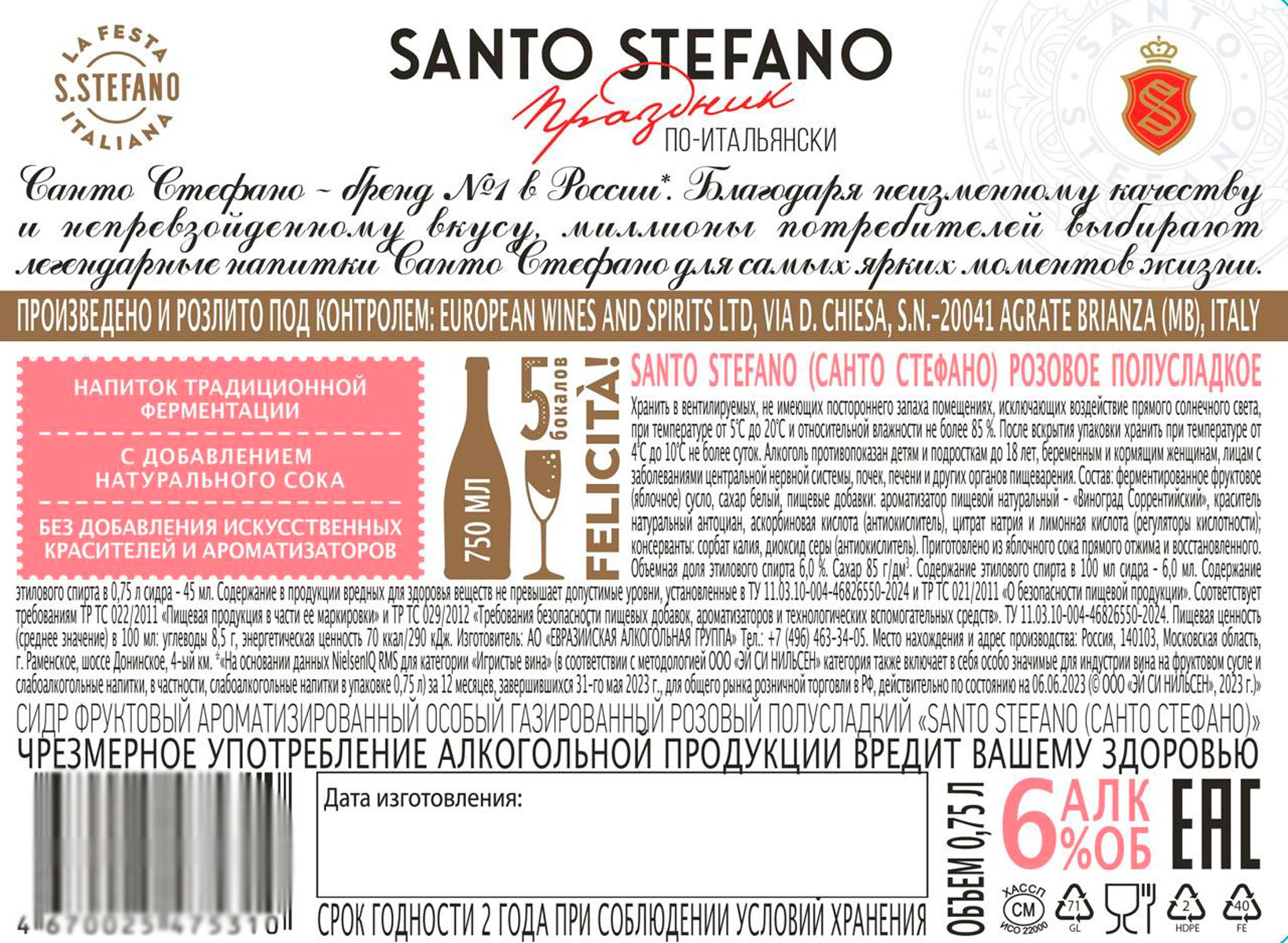 Напиток Санто Стефано розовый полусладкий 0,75 л