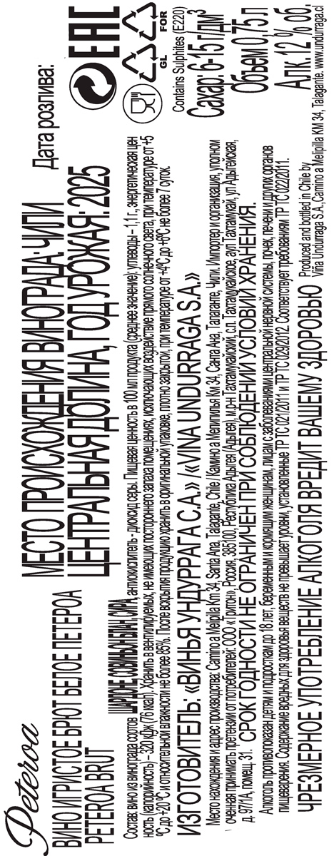 Вино игристое Петероа белое брют