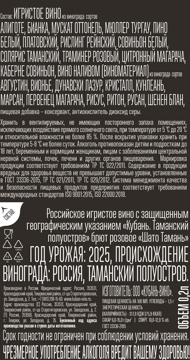 Вино игристое Шато Тамань розовое брют 0,2 л