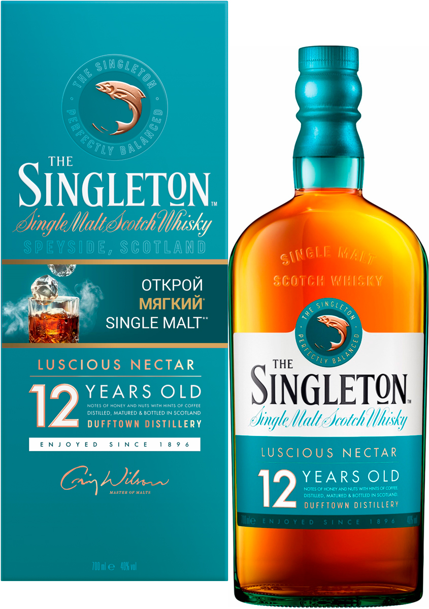 Singleton 12 Year Old — очень мягкий, приятный и питкий виски с долгим теплым послевкусием. Раньше виски под брендом Singleton производился на винокурне Auchroisk Distillery. Напитки Auchroisk Distillery, которые завоевали немало наград, производились из воды источника Dorie's Well (Колодец Дори), который славится кристально чистой, сладкой водой. Однако дистиллерия прекратила свое существование в 2001 году. А благодаря винокурне Dufftown производство уникального виски Singleton 12 Year Old было восстановлено. Этот виски прекрасно сбалансирован. Созревание в течение 12 лет в бочках из европейского и американского дуба придает ему гладкий, округлый вкус с нотками фруктов, сладостей и орехов.