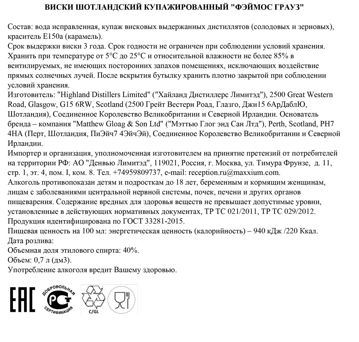 Виски Фэймос Грауз 3 года 0,7 л