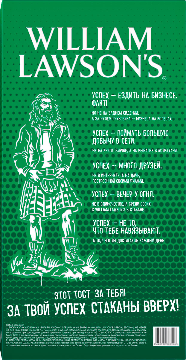 Набор Виски Вильям Лоусонс+2 банки Rich Кола 0,7 л