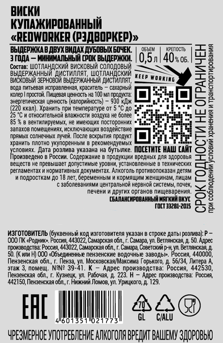 Напиток золотисто-янтарного цвета с мягкой органолептикой купажа, шелковистым, сбалансированным вкусом. Приятный деликатный древесный аромат и легкая торфяная «дымность» делают виски особенным. Насыщенный и многослойный вкус напитка оставляет долгое приятное и немного маслянистое послевкусие. Виски прекрасно выступает как сольный напиток, так и очень органично вписывается в состав коктейлей. Употреблять рекомендуется охлажденным.