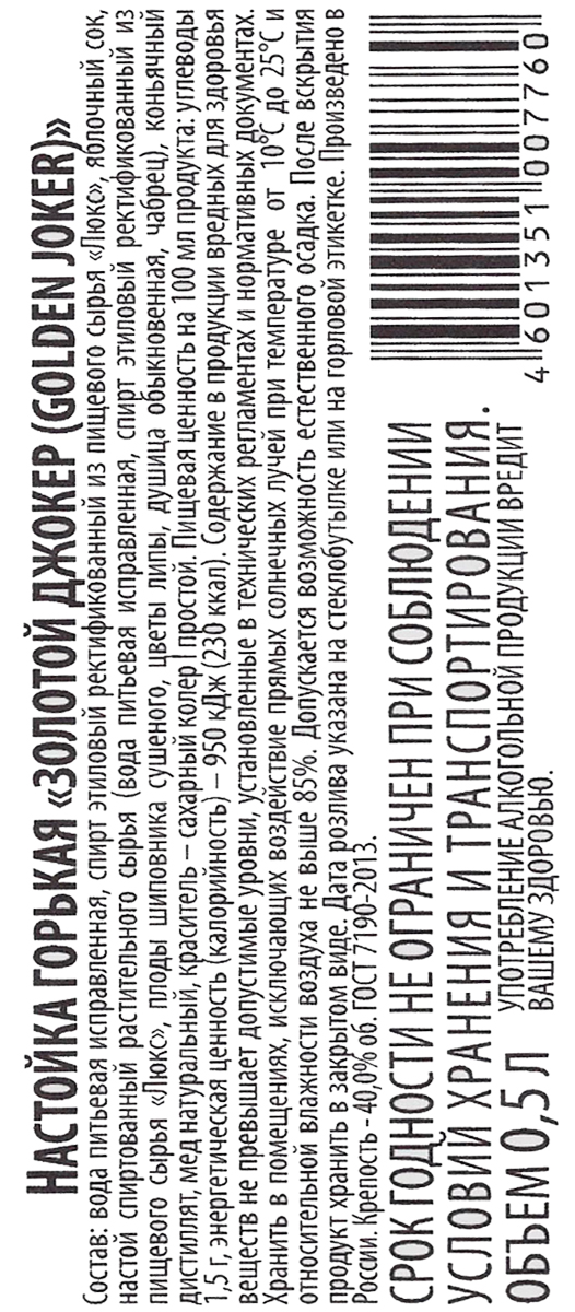 Настойка горькая Золотой Джокер