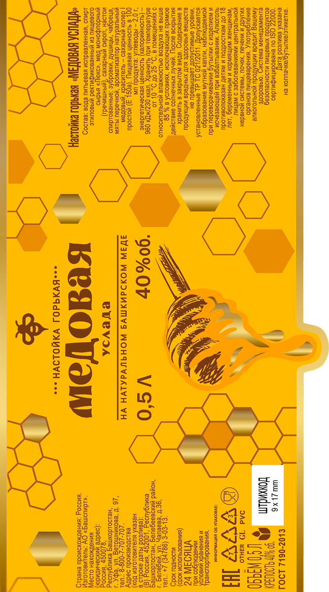 Медовая услада — настойка, приготовленная на натуральном башкирском мёде.