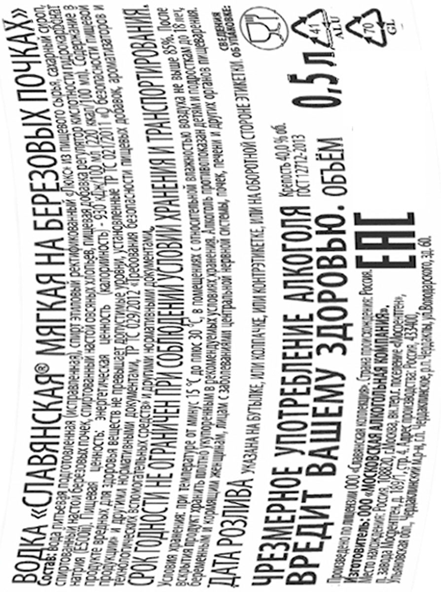 Водка Славянская мягкая на березовых почках