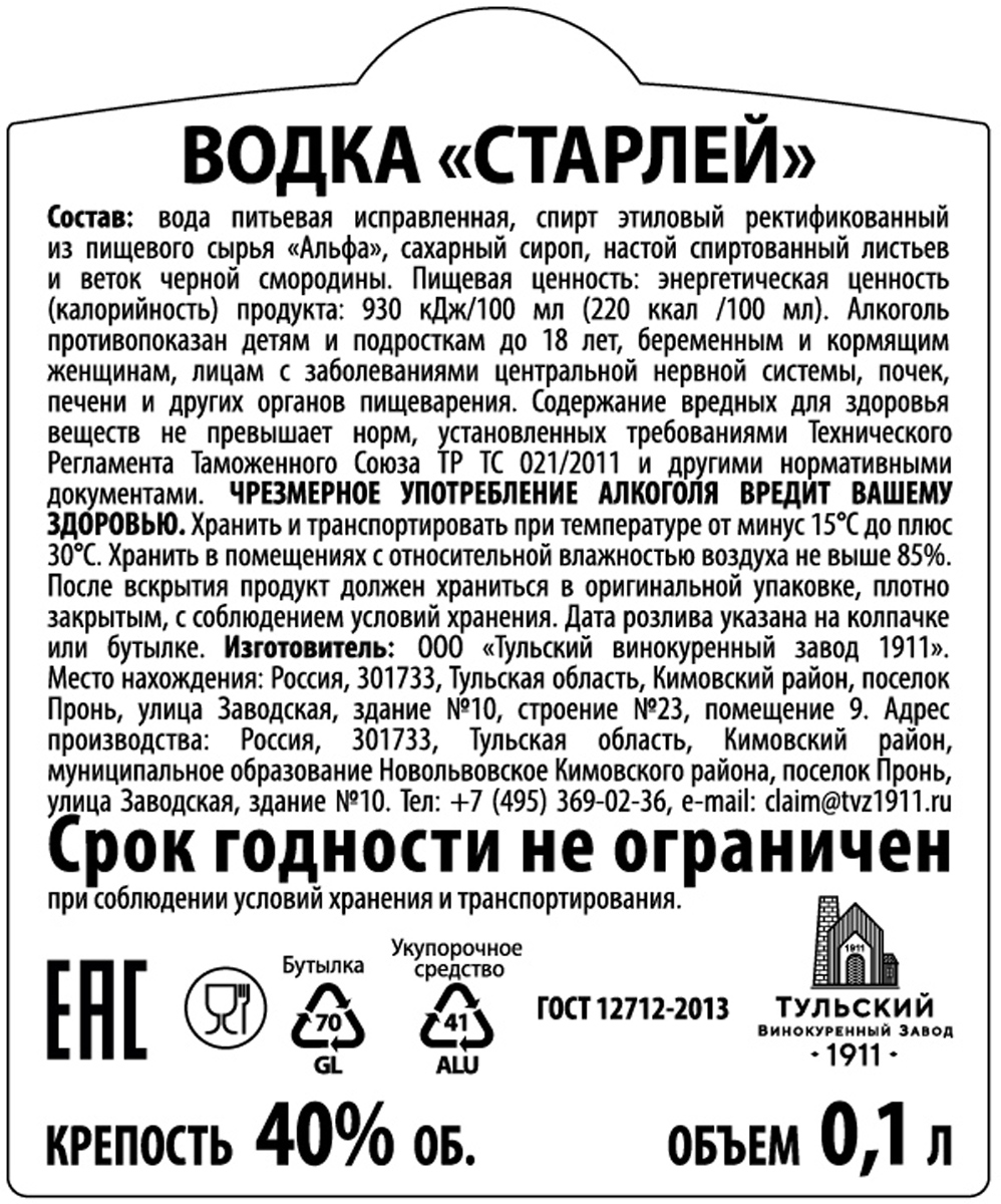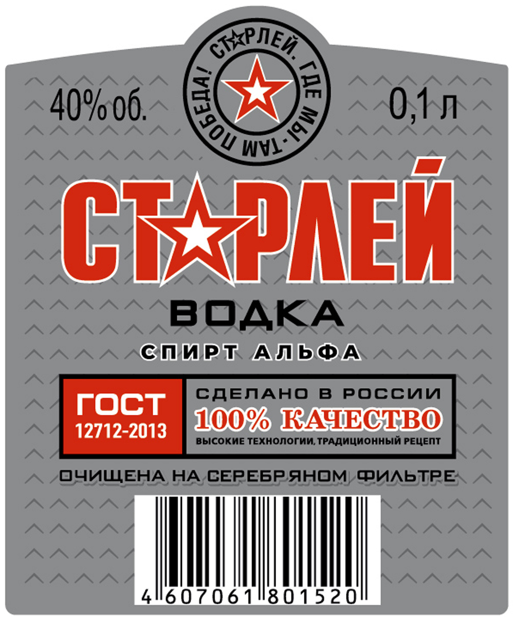 «Старлей» — водка отменного качества для крепких мужчин. У бутылки строгая лаконичная форма, напоминающая доблестного офицера. Классическая рецептура дополнена настоем листьев и веток черной смородины. Водка «Старлей». Где мы – там победа!