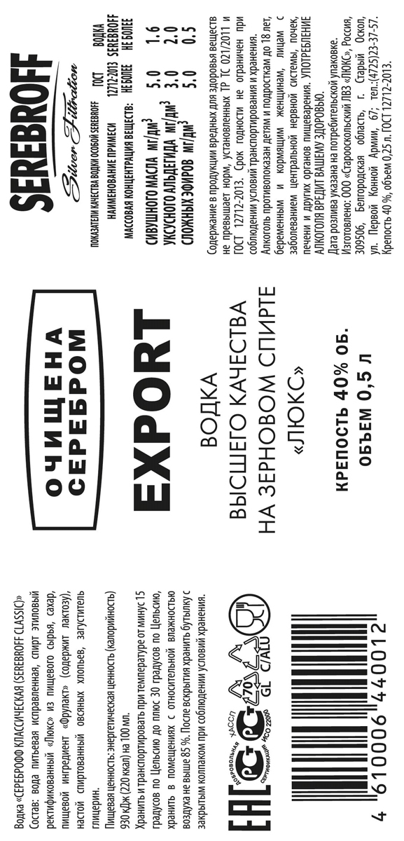 «Сереброфф» берет своё начало в далеком 2002 году. Среди главных характеристик, влияющих на вкус водки, является качество фильтрации на стадии производства. Одним из наиболее зарекомендовавших себя видов фильтрации является «серебряная фильтрация», а именно технология двойной фильтрации, в которой после традиционной очистки активированным углем происходит фильтрация «серебряным углем». По многочисленным исследованиям, такой способ очистки способствует улучшению органолептических свойств конечного продукта, что дает ему безусловное преимущество.