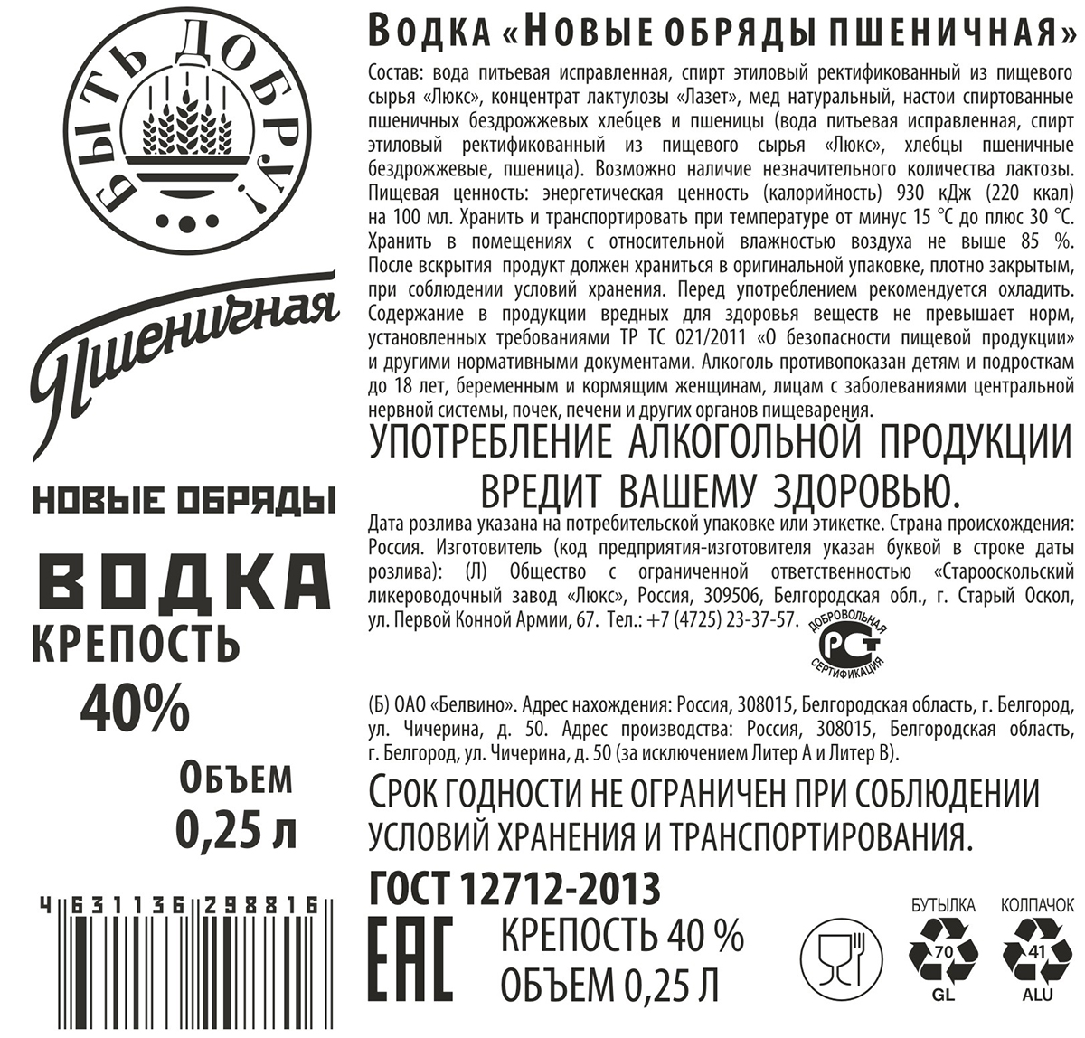 Водка Новые Обряды Пшеничная