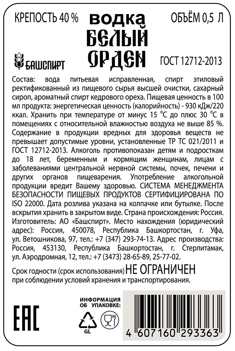 Водка Белый орден