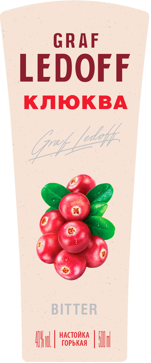 Горькая настойка с ароматом клюквы дополняет линейку GRAF LEDOFF. Изготовлена из спирта «Альфа». Имеет приятный вкус со сладковато-кисловатыми нотками клюквы. Перед употреблением рекомендуется немного охладить.