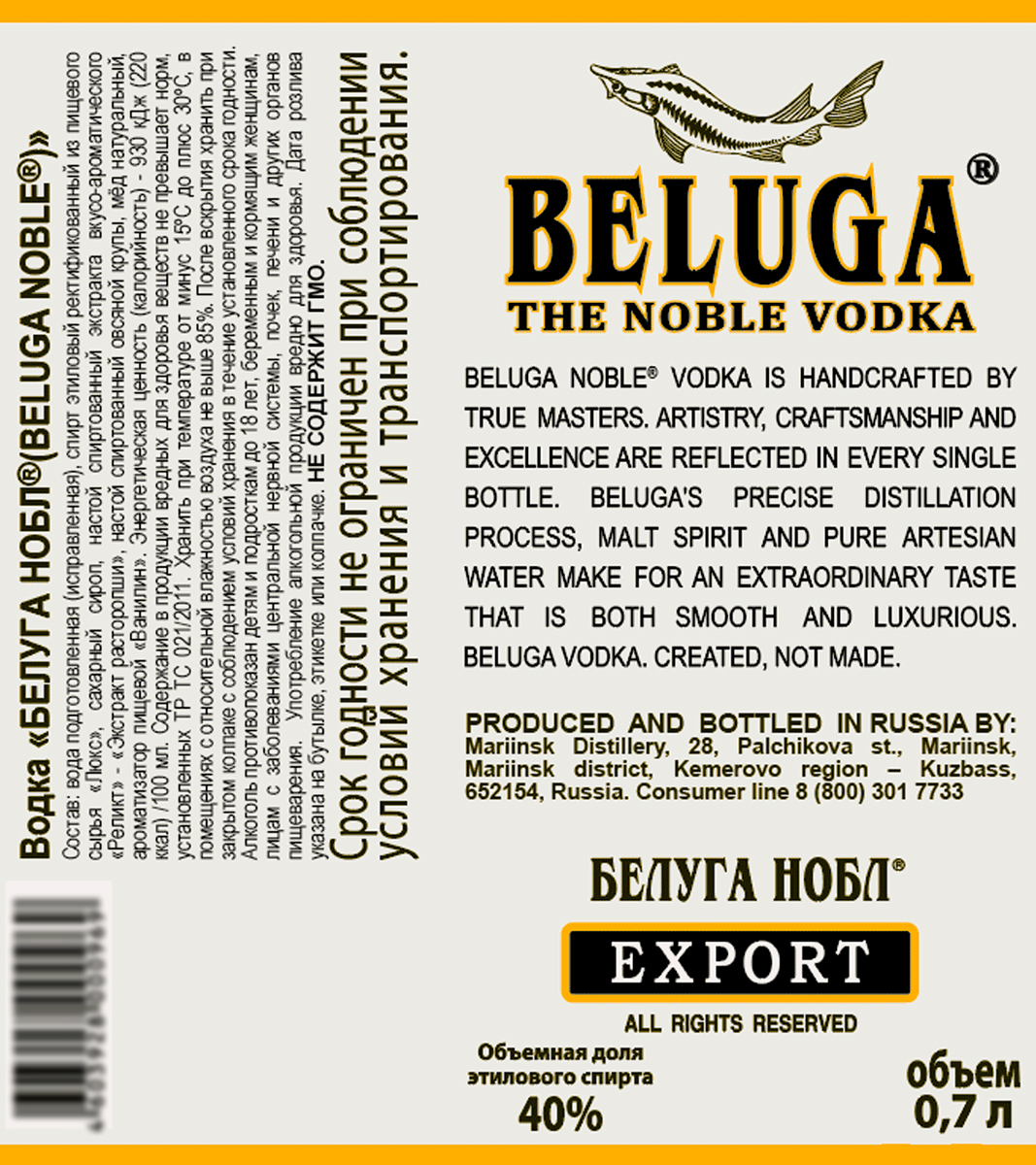 Флагманский продукт в семье бренда Beluga, который приобрел статус классики. Натуральные ингредиенты, спирт из отборных зерен, чистая артезианская вода, а также тридцатидневный период «отдыха» — все это обеспечивает Beluga Noble насыщенный вкус и мягкий аромат.